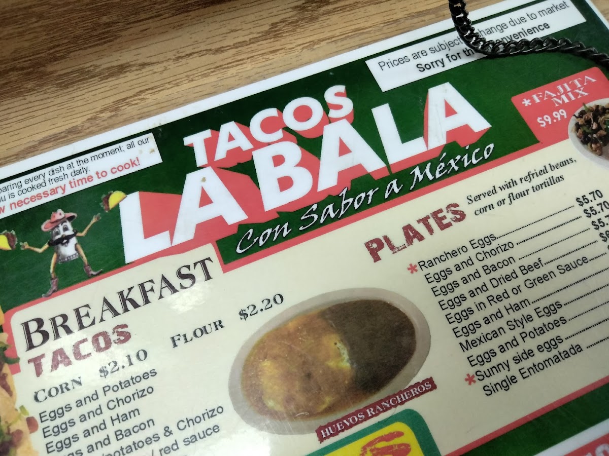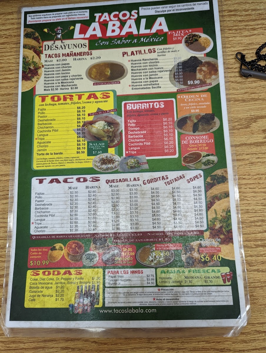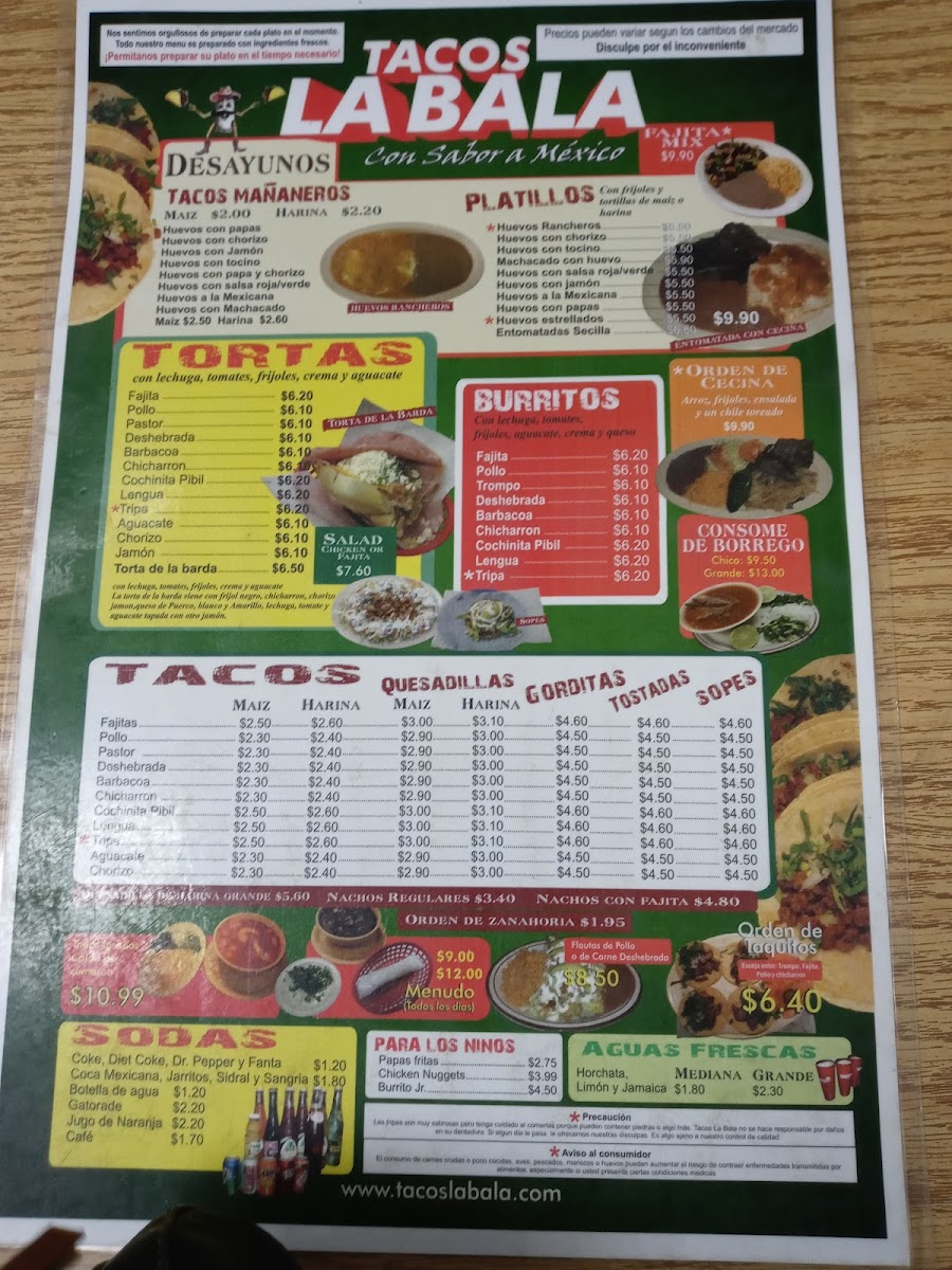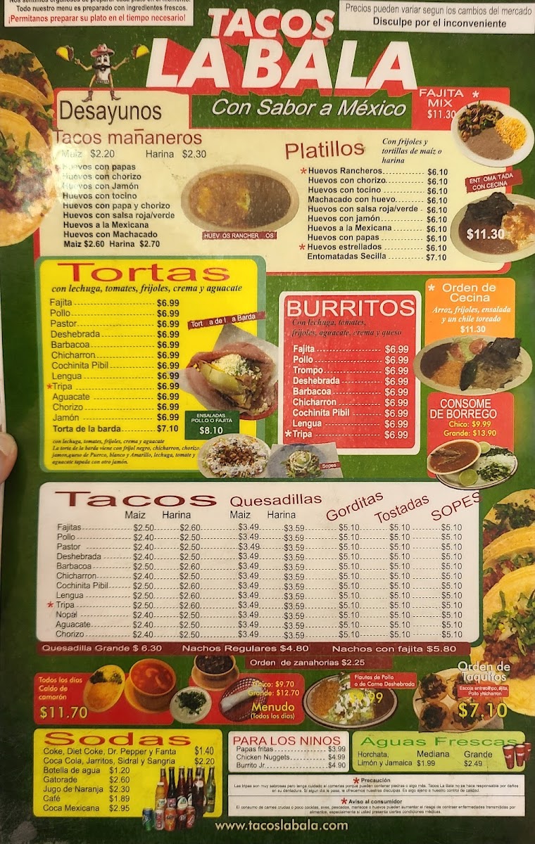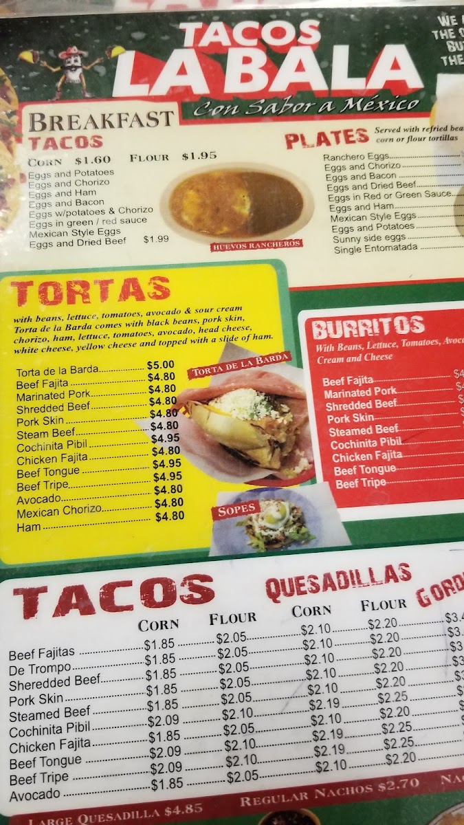Tacos La Bala Menu